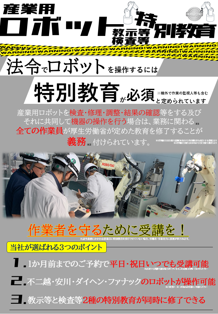 産業用ロボットに触れるために必ず修了が必須と法令で定められている
